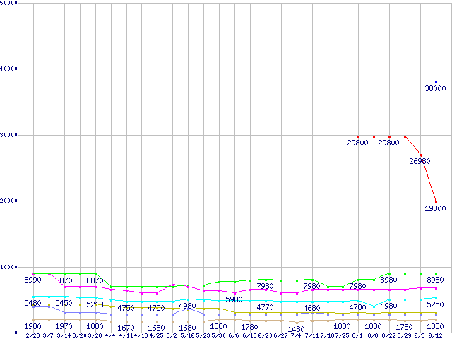 | ※製品名をクリックすると個別のグラフを表示します ※点線部は販売店が確認できなかった、または調査データがないことを示します | |
