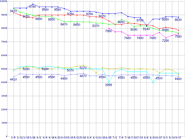 | ※製品名をクリックすると個別のグラフを表示します ※点線部は販売店が確認できなかった、または調査データがないことを示します | |