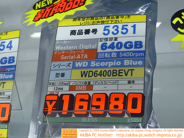 AKIBA PC Hotline! 2009年9月26日号640GB/9.5mm厚の2.5"HDDが発売、9.5mm厚で最大容量今週見つけた新製品:ハードディスク Western Digital WD6400BEVT前の画像←[記事に戻る]