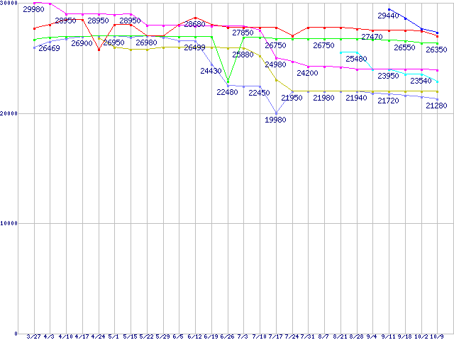 | CPU主要製品(最安値2万円〜3万円未満)の最安値推移 |
