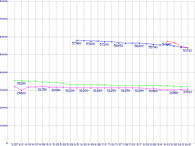 | CPU主要製品(最安値3万円〜6万円未満)の最安値推移 |