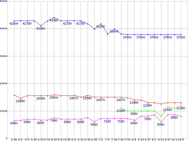 | ※製品名をクリックすると個別のグラフを表示します ※点線部は販売店が確認できなかった、または調査データがないことを示します | |