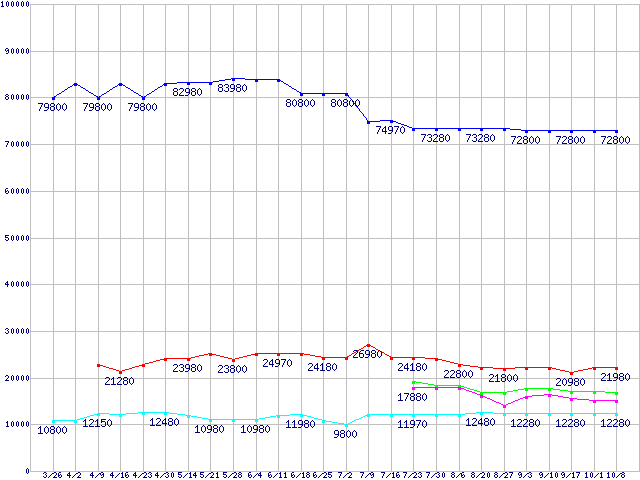 | HDD/SSD 60GB〜80GB未満の最安値推移 |