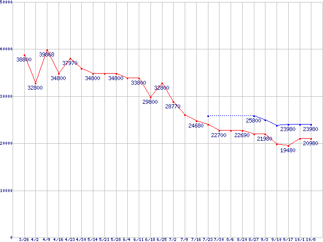 | ※製品名をクリックすると個別のグラフを表示します ※点線部は販売店が確認できなかった、または調査データがないことを示します |