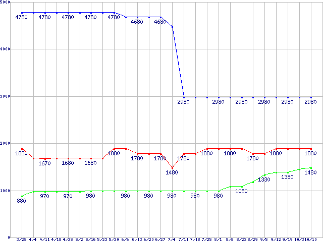 | ※製品名をクリックすると個別のグラフを表示します ※点線部は販売店が確認できなかった、または調査データがないことを示します | |
