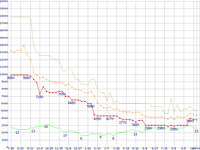 | PC3-10600 1GB×2枚組みセットの価格推移 |
