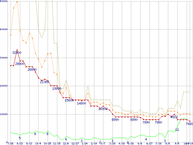 | PC3-12800 2GB×2枚組みセットの価格推移 |