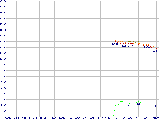 | Phenom II X3 705e (2.5GHz,L2 512KB×3,L3 6MB,TDP 65W)の価格推移 |