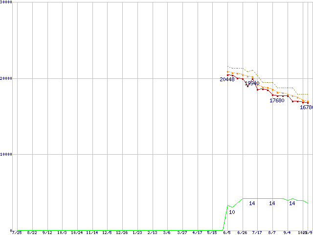 | Phenom II X4 905e (2.5GHz,L2 512KB×4,L3 6MB,TDP 65W)の価格推移 |