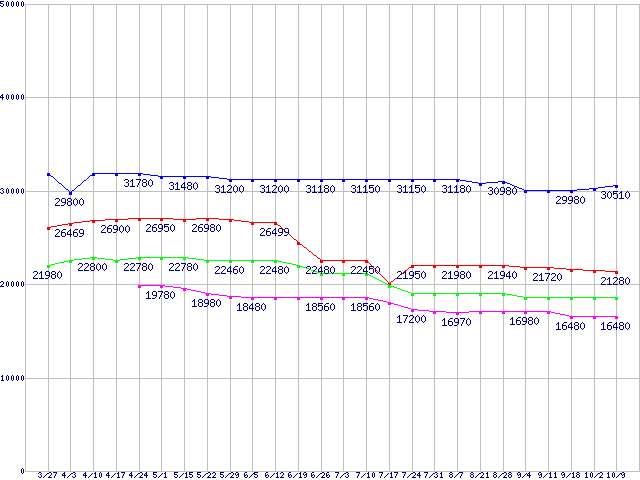 | ※製品名をクリックすると個別のグラフを表示します ※点線部は販売店が確認できなかった、または調査データがないことを示します | |