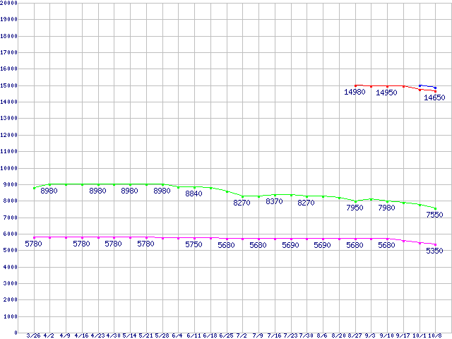 | WD Scorpio Blue (5200〜5400rpm,3Gb/s,2.5インチ)の最安値推移 |