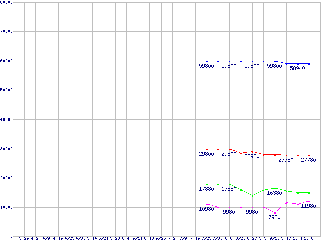 | ※製品名をクリックすると個別のグラフを表示します ※点線部は販売店が確認できなかった、または調査データがないことを示します | |