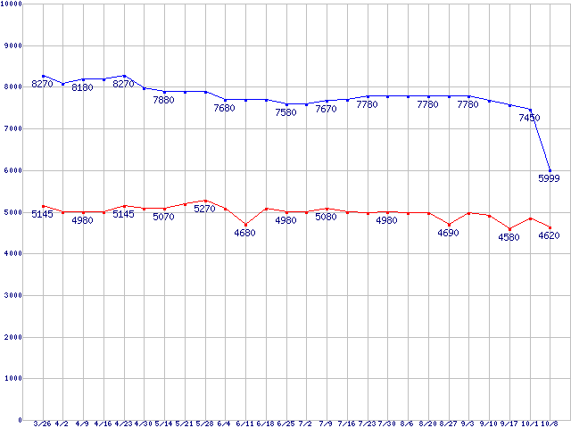 | Barracuda 7200.12 (7200rpm,3Gb/s)の最安値推移 |