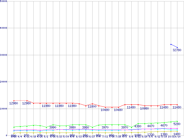 | ※製品名をクリックすると個別のグラフを表示します ※点線部は販売店が確認できなかった、または調査データがないことを示します | |