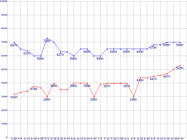 | ※製品名をクリックすると個別のグラフを表示します ※点線部は販売店が確認できなかった、または調査データがないことを示します |