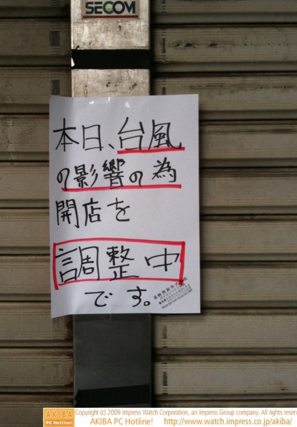 台風でパーツショップにも影響、開店遅延など