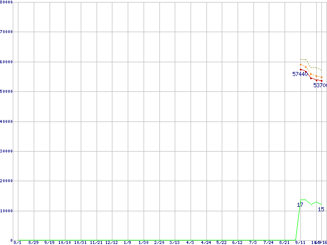 Core i7-870 (2.93GHz)の価格推移↑前グラフ↓次グラフ(2008年8月1日〜2009年10月16日)※このグラフは過去のデータも税率5%相当に調整した税込み相当額のグラフです。 税率変更や、総額表示方式導入(2004年4月)の影響は除いています。●関連グラフCPU主要製品の最安値推移CPU主要製品(最安値3万円〜6万円未満)の最安値推移Intel系CPUの最安値推移LGA1156 (L3キャッシュ8MB,Quad Core,Hyper-Threading,TDP 95W)の最安値推移●凡例最安値(点線部は販売店未確認または未調査)平均値最高値ショップ数