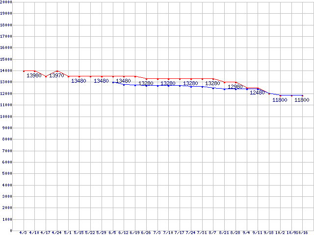 | Socket AM3 (HyperTransport 3.0,Triple Core)の最安値推移 |