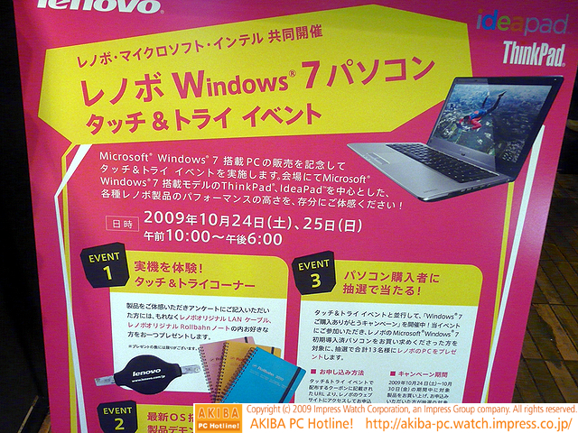 レノボがリナカフェでイベント、独自のWin 7高速化技術をアピール