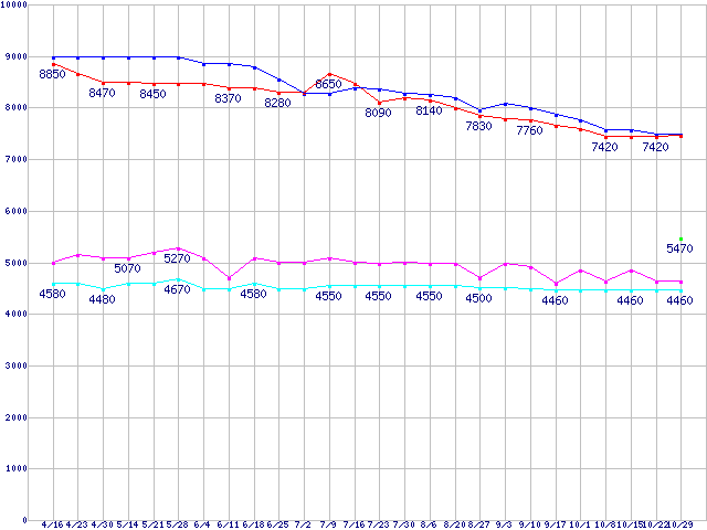| ※製品名をクリックすると個別のグラフを表示します ※点線部は販売店が確認できなかった、または調査データがないことを示します | |