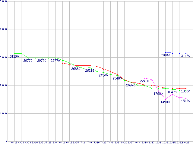 | ※製品名をクリックすると個別のグラフを表示します ※点線部は販売店が確認できなかった、または調査データがないことを示します | |