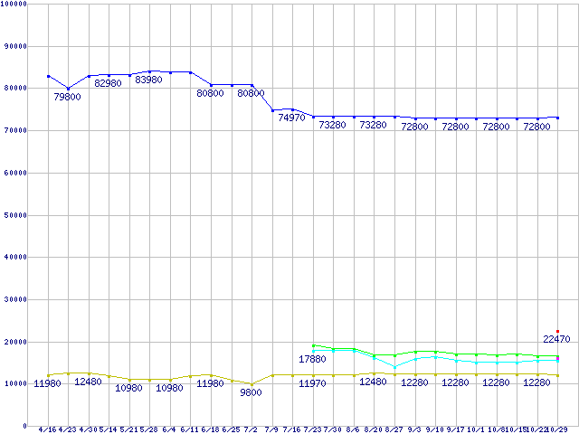 | HDD/SSD 60GB〜80GB未満の最安値推移 |