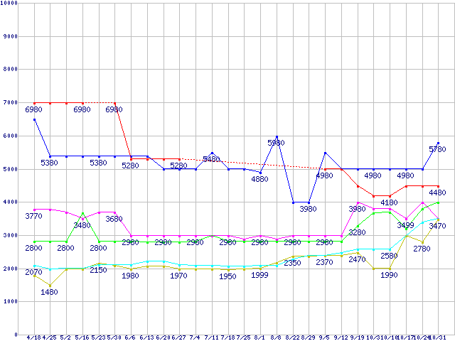 | ※製品名をクリックすると個別のグラフを表示します ※点線部は販売店が確認できなかった、または調査データがないことを示します | |