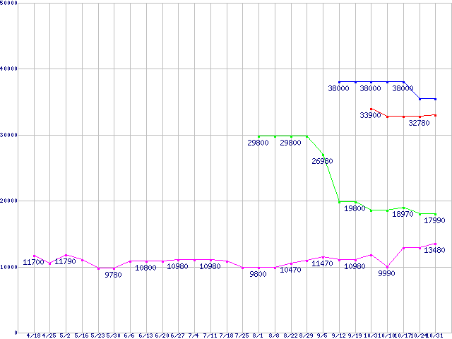 | ※製品名をクリックすると個別のグラフを表示します ※点線部は販売店が確認できなかった、または調査データがないことを示します | |