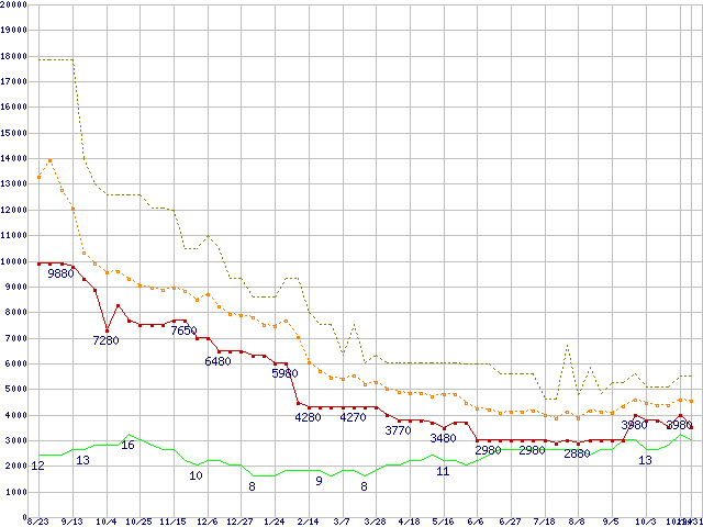 | PC3-10600 1GB×2枚組みセットの価格推移 |