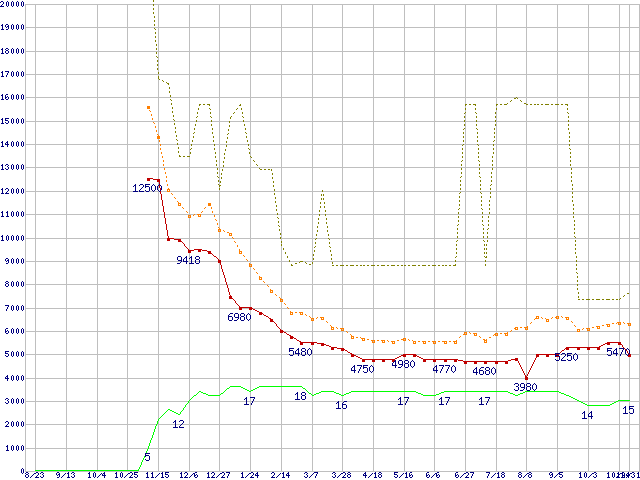 | PC3-10600 1GB×3枚組みセットの価格推移 |
