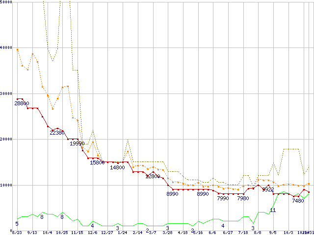 | PC3-12800 2GB×2枚組みセットの価格推移 |