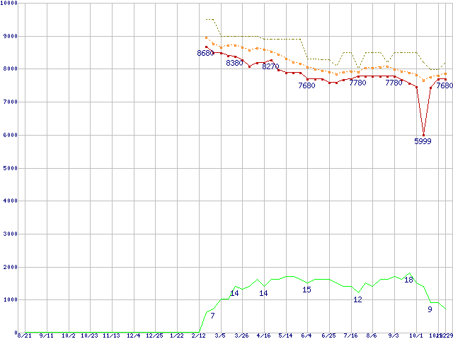 | ST31000528AS (1TB,32MB)の価格推移 |