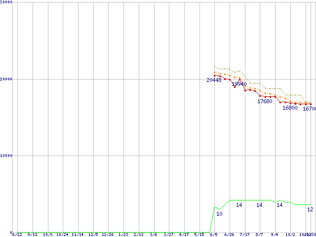 | Phenom II X4 905e (2.5GHz,L2 512KB×4,L3 6MB,TDP 65W)の価格推移 |