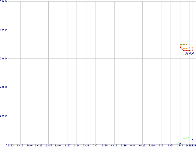 PC2-6400 4GB×2枚組みセットの価格推移↑前グラフ↓次グラフ(2008年8月23日〜2009年10月31日)※このグラフは過去のデータも税率5%相当に調整した税込み相当額のグラフです。 税率変更や、総額表示方式導入(2004年4月)の影響は除いています。●関連グラフメモリ主要製品の最安値推移メモリ主要製品(最安値1万円以上)の最安値推移PC2-6400(DDR2-800) DDR2 SDRAM DIMMの最安値推移●凡例最安値(点線部は販売店未確認または未調査)平均値最高値ショップ数
