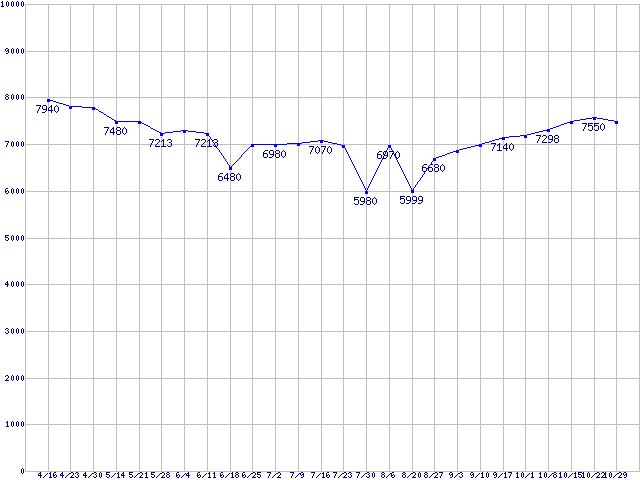 | Deskstar 7K1000.B (7200rpm,3Gb/s)の最安値推移 |