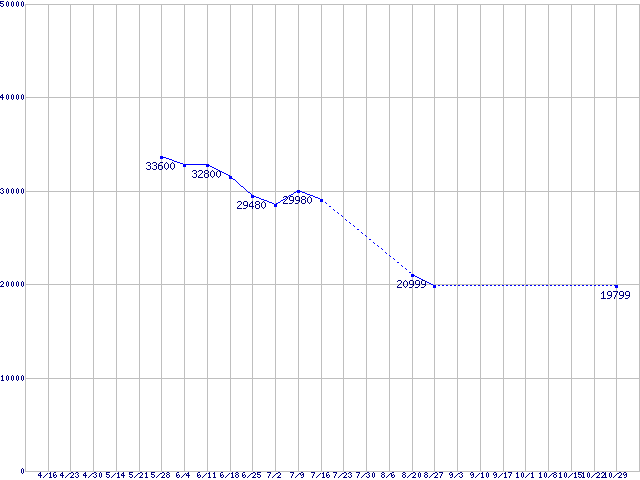 | X25-M (SSD,3Gb/s,2.5インチ,リード250MB/s・ライト70MB/s)の最安値推移 |