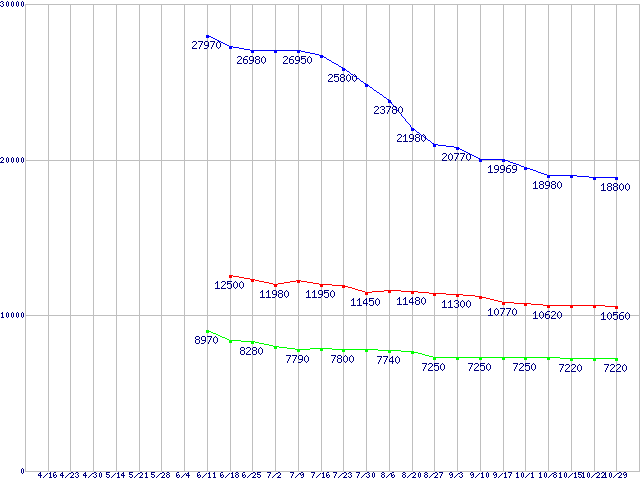 | Barracuda LP (5900rpm,3Gb/s)の最安値推移 |