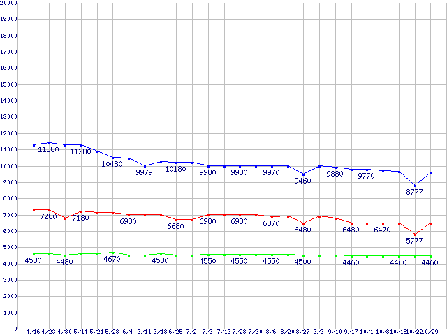 | ※製品名をクリックすると個別のグラフを表示します ※点線部は販売店が確認できなかった、または調査データがないことを示します | |