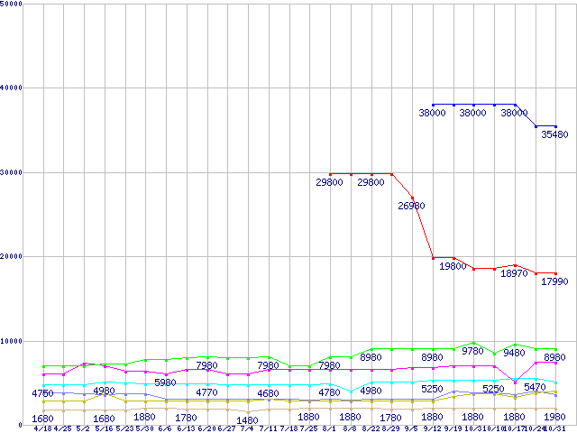 | ※製品名をクリックすると個別のグラフを表示します ※点線部は販売店が確認できなかった、または調査データがないことを示します | |