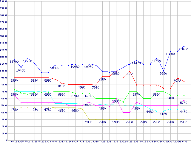 | ※製品名をクリックすると個別のグラフを表示します ※点線部は販売店が確認できなかった、または調査データがないことを示します | |