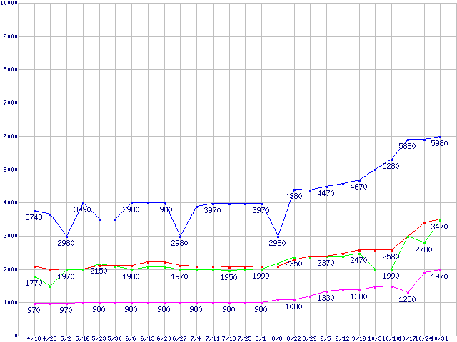 | ※製品名をクリックすると個別のグラフを表示します ※点線部は販売店が確認できなかった、または調査データがないことを示します | |