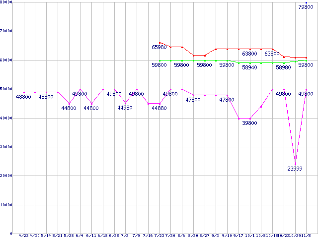 | ※製品名をクリックすると個別のグラフを表示します ※点線部は販売店が確認できなかった、または調査データがないことを示します | |