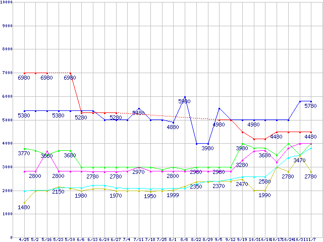 | ※製品名をクリックすると個別のグラフを表示します ※点線部は販売店が確認できなかった、または調査データがないことを示します | |