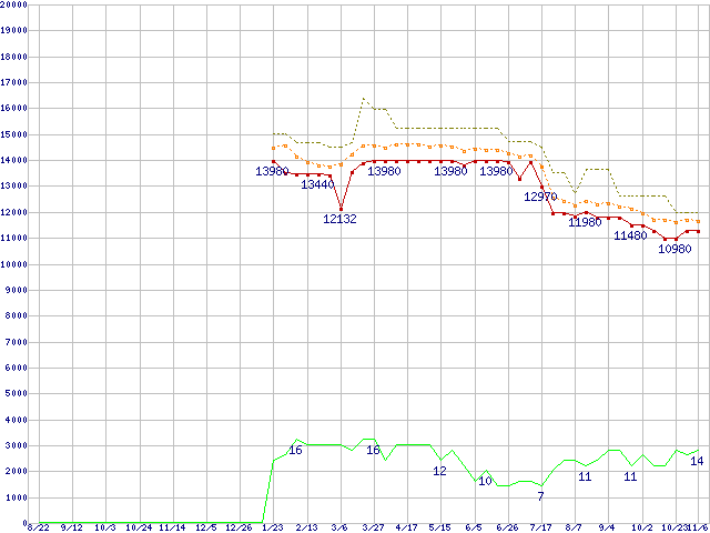 | Core 2 Duo E7500 (2.93GHz,L2 3MB)の価格推移 |