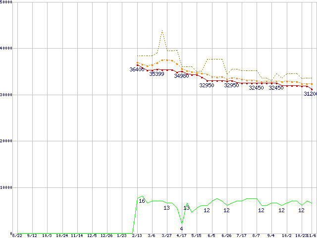 | Core 2 Quad Q9550S (2.83GHz,L2 6MB×2)の価格推移 |