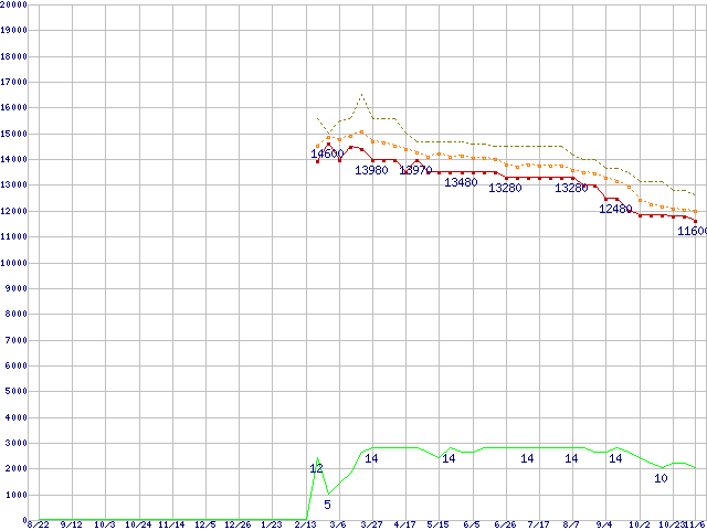 | Phenom II X3 720 Black Edition (2.8GHz,L2 512KB×3,L3 6MB,TDP 95W)の価格推移 |
