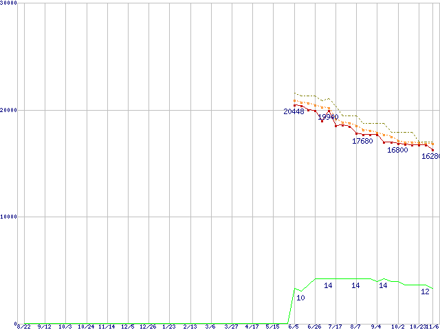 | Phenom II X4 905e (2.5GHz,L2 512KB×4,L3 6MB,TDP 65W)の価格推移 |