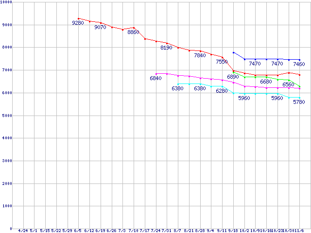 | ※製品名をクリックすると個別のグラフを表示します ※点線部は販売店が確認できなかった、または調査データがないことを示します | |