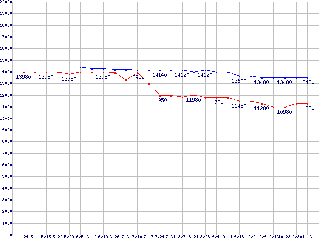 | LGA775 (FSB 1066MHz,Dual Core,TDP 65W)の最安値推移 |
