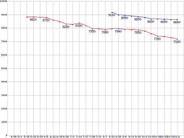 | LGA775 (FSB 1066MHz,Dual Core,TDP 65W)の最安値推移 |
